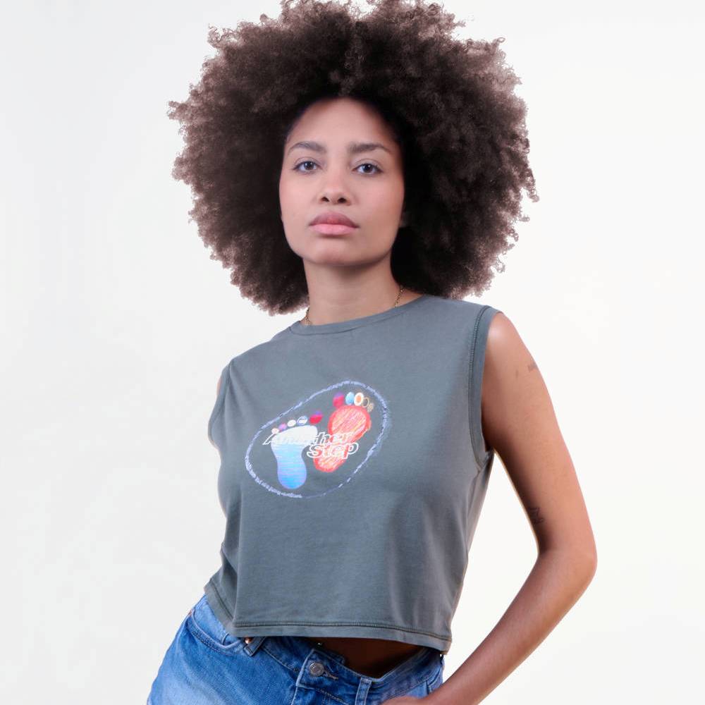 Camiseta CROP sin mangas para un look moderno. Efecto lavado y corte casual.
